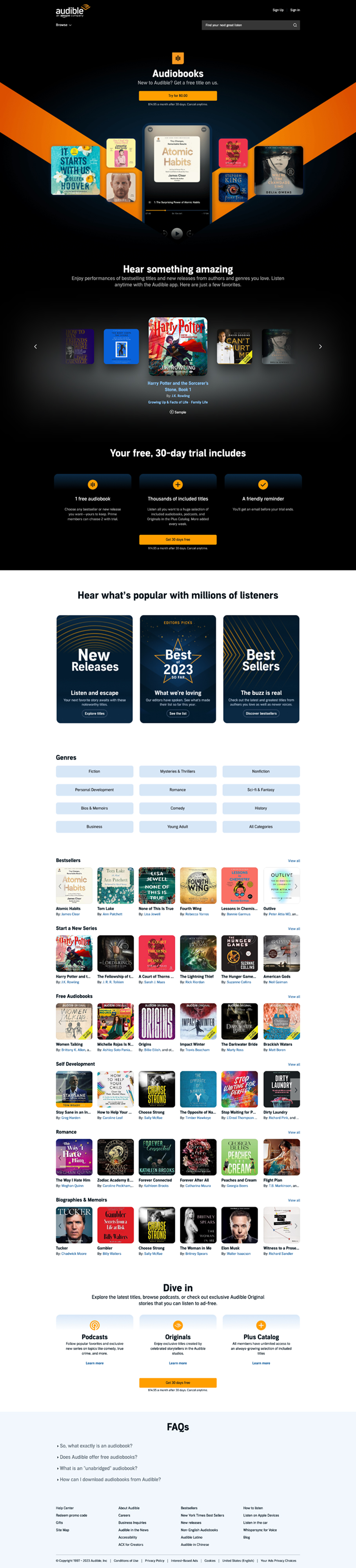 We created a unified system of 15 optimized key landing pages with dynamic content strategies that increased organic traffic by 10% YoY and reduced manual merchandising by 75%, while achieving global template unification and establishing clear ownership processes to ensure consistent experiences across all Audible markets.