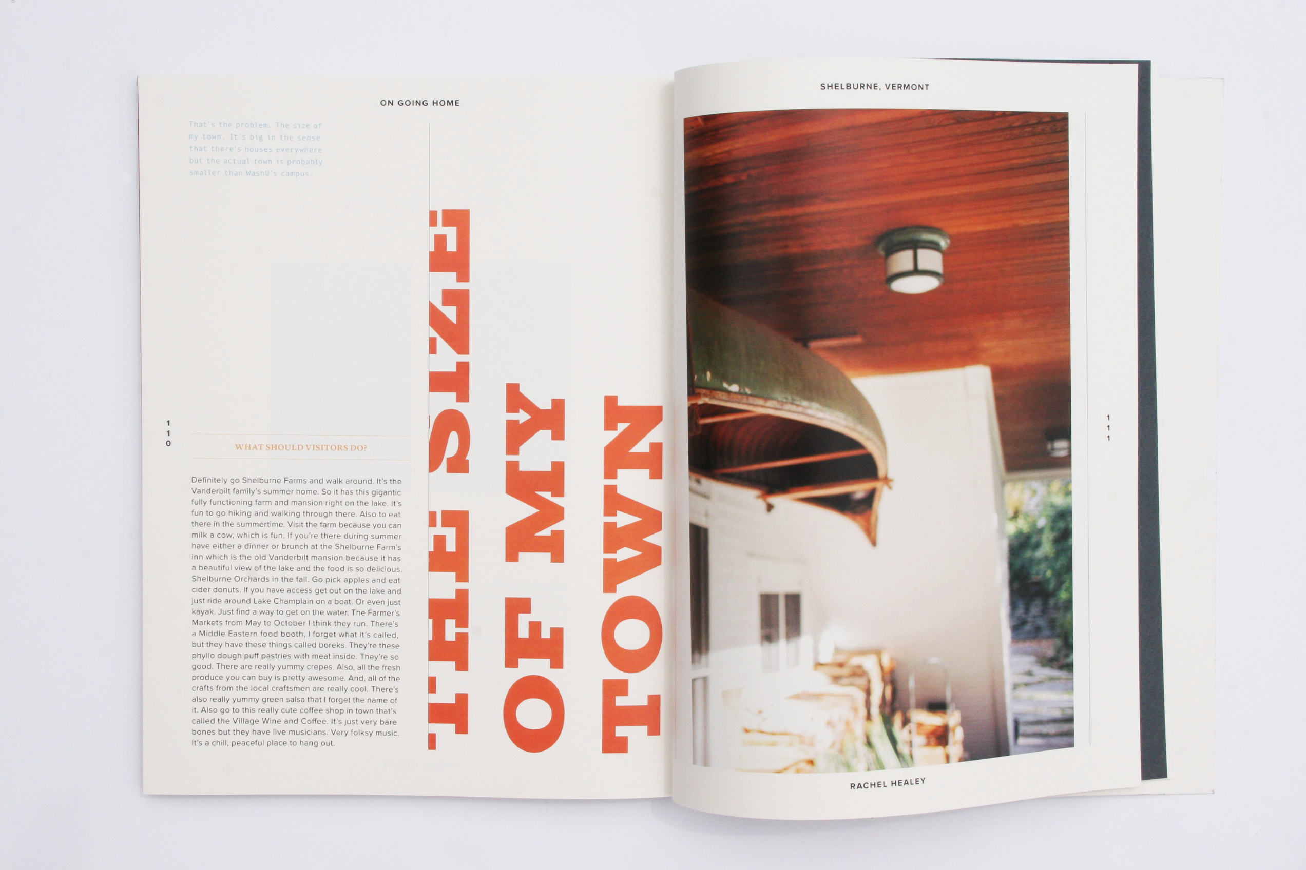 I set out on this project with the intention of exploring traveling in a more personal and authentic sense than traditional travel guides. I interviewed 25 students from around the country and the world and ultimately selected six to explore in depth though the book. Each chapter focuses on an individual and guides the audience through a town using the narrative and life story of that specific person rather than utilizing a more traditional travel guide structure.